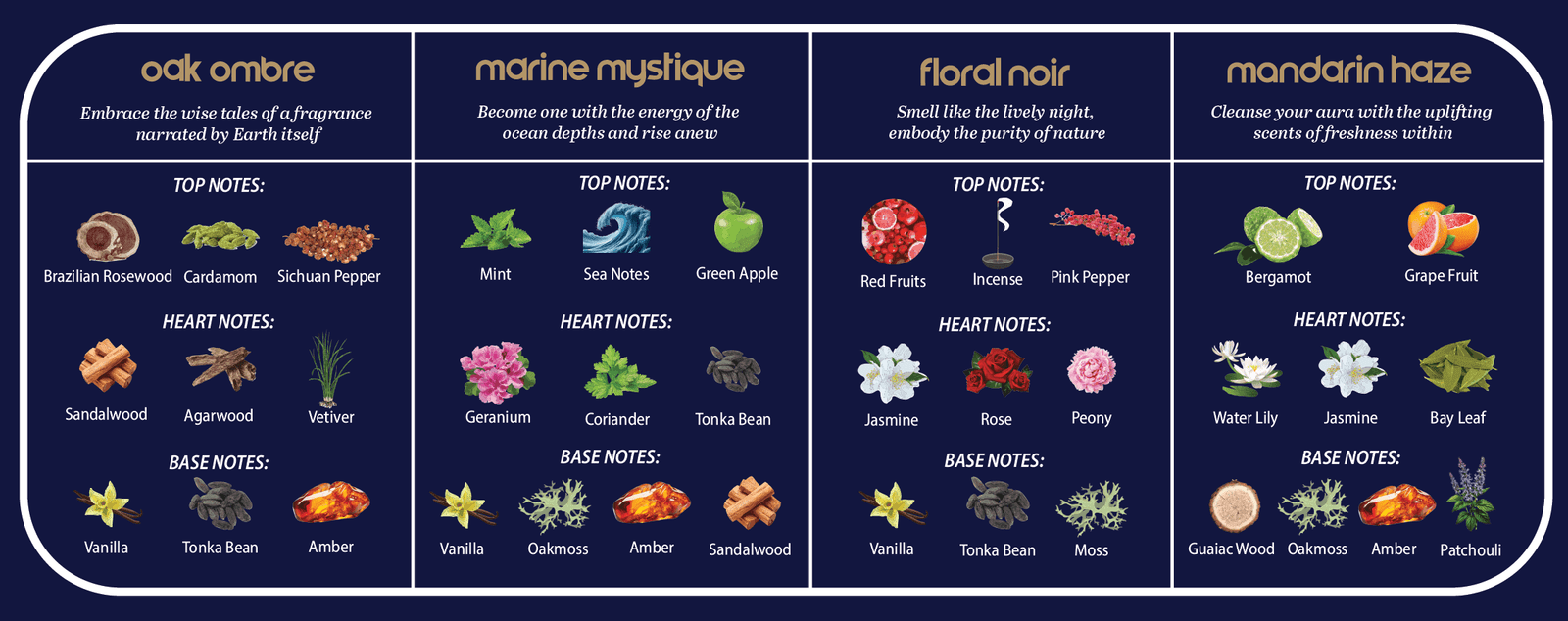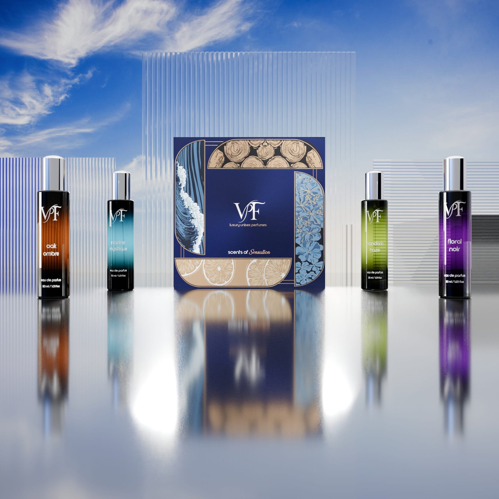 Scents of Sensation is the alchemy of opposites the bloom and the blaze, the drift and the anchor, the seen and the sensed. A quartet composed not for a gender or a generation, but for the soul itself. Here, you do not choose who you are based on rules of flesh or era.